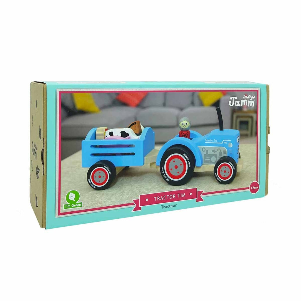 Tractor Tim is a classic blue farm tractor with a detachable trailer, complete with five wooden farm animals and a removable peg person, Farmer Tim. This engaging toy encourages creative play and storytelling as children transport animals in the trailer and explore farm life. Made from organically sourced timber, painted with non-toxic, water-based paints, and shipped in plastic-free packaging, Tractor Tim is an organic choice for young children.