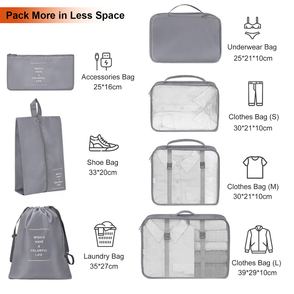 Vagooz 7-Piece Travel Organizer Set – Lightweight Packing Bags for Luggage, Grey