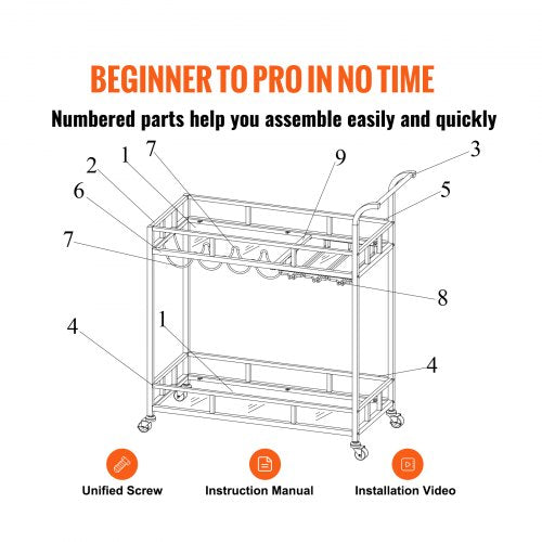 Carefree Assembly: The liquor cart provides all necessary accessories and detailed instructions. It comes with unified screws and clear and brief instructions. All parts are provided with labeled numbers, and each assembly step is listed clearly. You can easily understand the assembly process, wasting little time and energy. Start preparing your favorite wines and dishes!