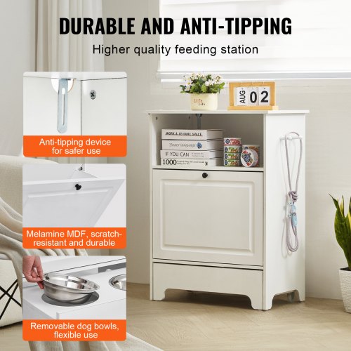Easy Installation and Maintenance: Designed with pre-drilled holes, our pet feeding station is simple to assemble using minimal tools and the provided instructions. The melamine MDF is smooth, waterproof, and easy to clean.