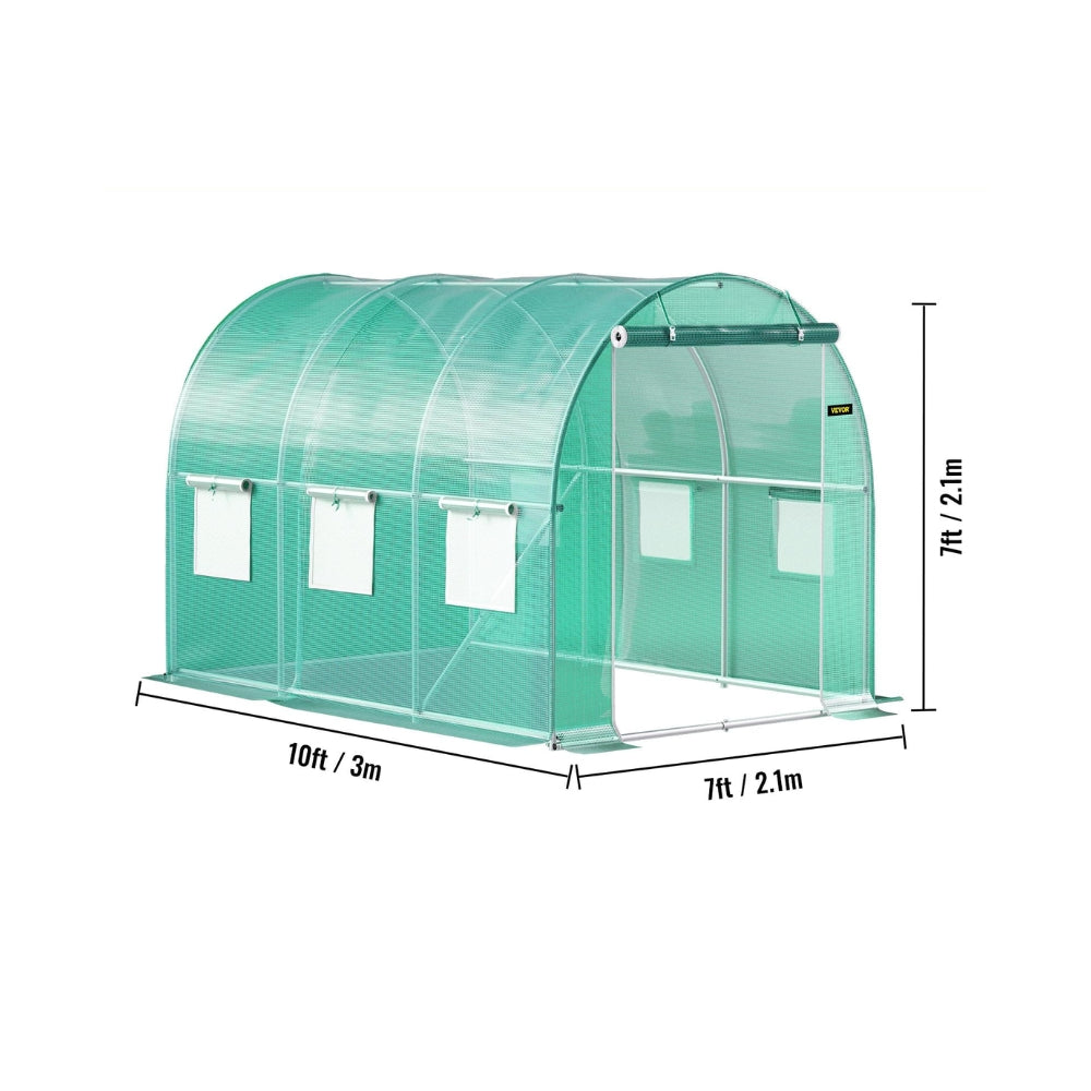 - The greenhouse is built to last, with reinforced diagonal poles and a stable frame that withstands harsh conditions like wind, rain, and snow. It’s easy to set up, with all the necessary tools included for a quick assembly, making it suitable for both experienced gardeners and beginners. Roll-up windows and the door offer control over internal ventilation, helping maintain a healthy environment for your plants. This walk-in tunnel greenhouse provides an ideal environment for plant growth, designed with ample space to accommodate a variety of gardening activities.