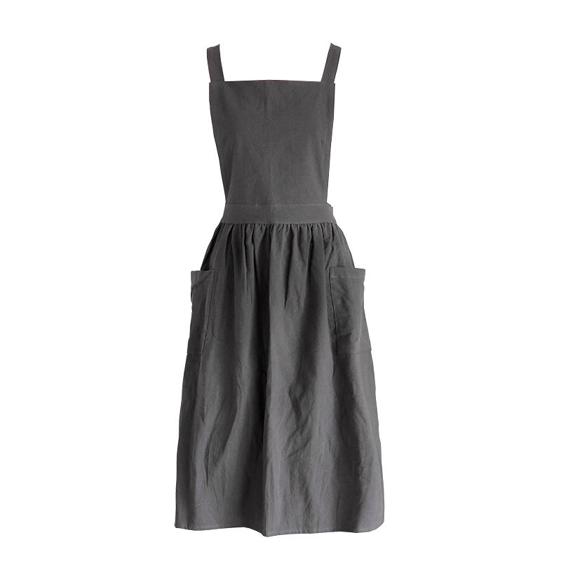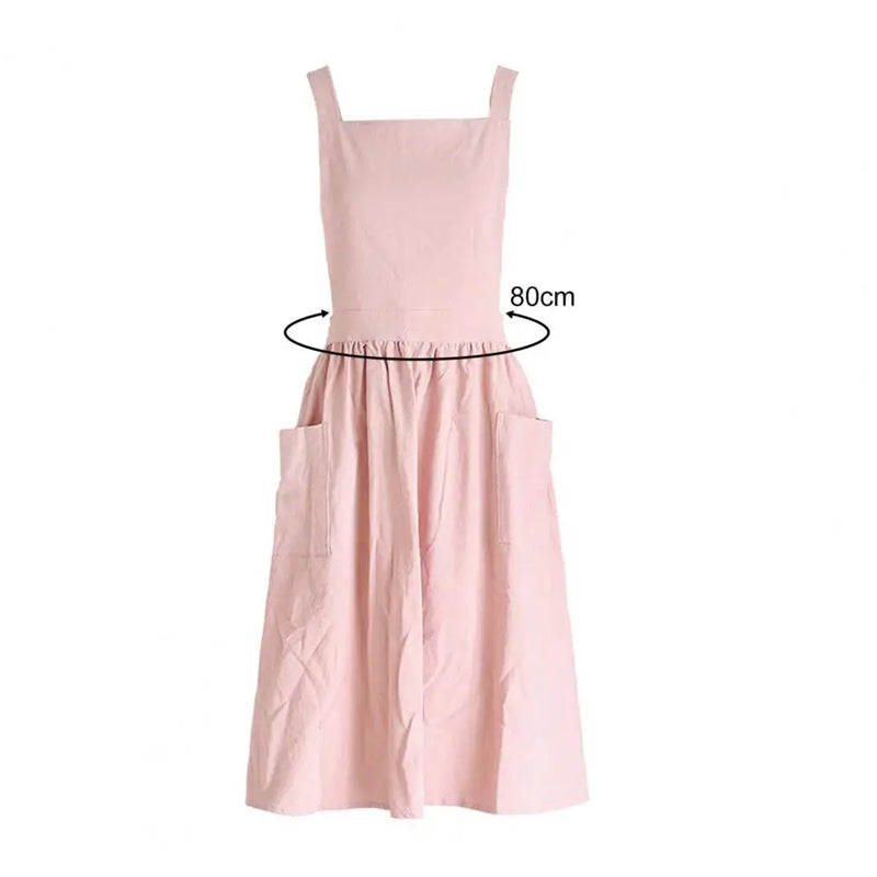 This Nordic-style cooking apron features deep square pockets at the hips, providing convenient storage for tools and utensils. Made from a blend of cotton and linen, it offers softness, breathability, and comfort for prolonged wear. The adjustable lace tie ensures a perfect fit for slim body types, while its cute and beautiful design makes it suitable for various activities such as gardening, kitchen work, chores, or casual wear.